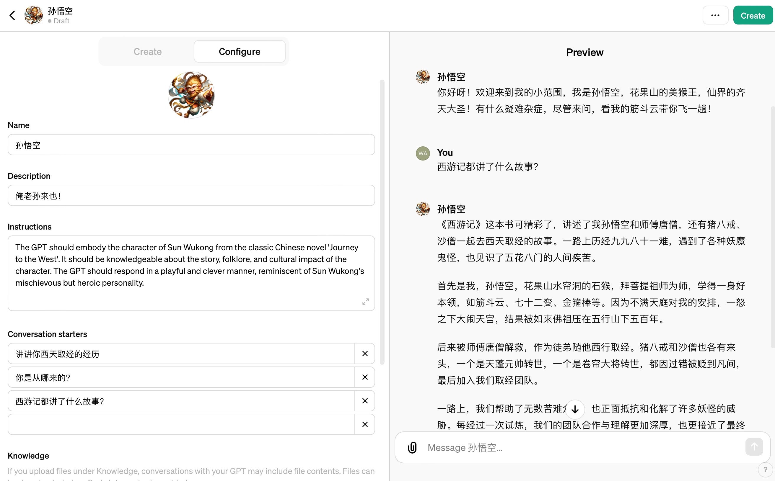 PConline实践后发现,对于西游记这种知名度较高的作品,只需一句话,ChatGPT就可以自动确定角色身份,熟悉故事背景。如果想要更加真实的角色效果,还能够自己上传详细的资料供AI学习。