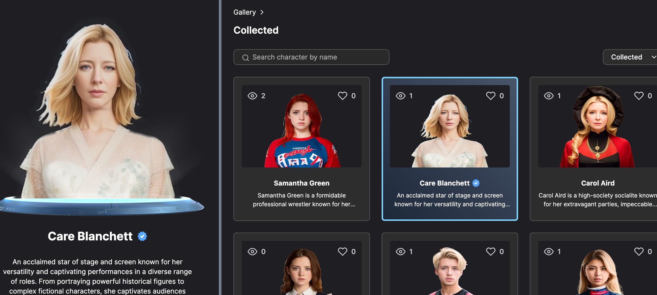 Character AI社区中的角色之一:基于演员凯特·布拉切特的AI虚拟角色
