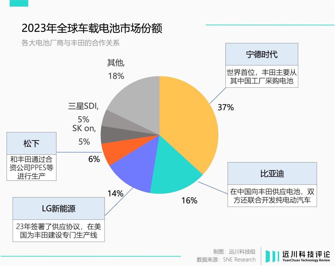 截至2023年,宁德时代和比亚迪的全球车载电池市占率已达到36.8%和15.8%[18],高傲如丰田,也不得不向海外供应商伸出橄榄枝。