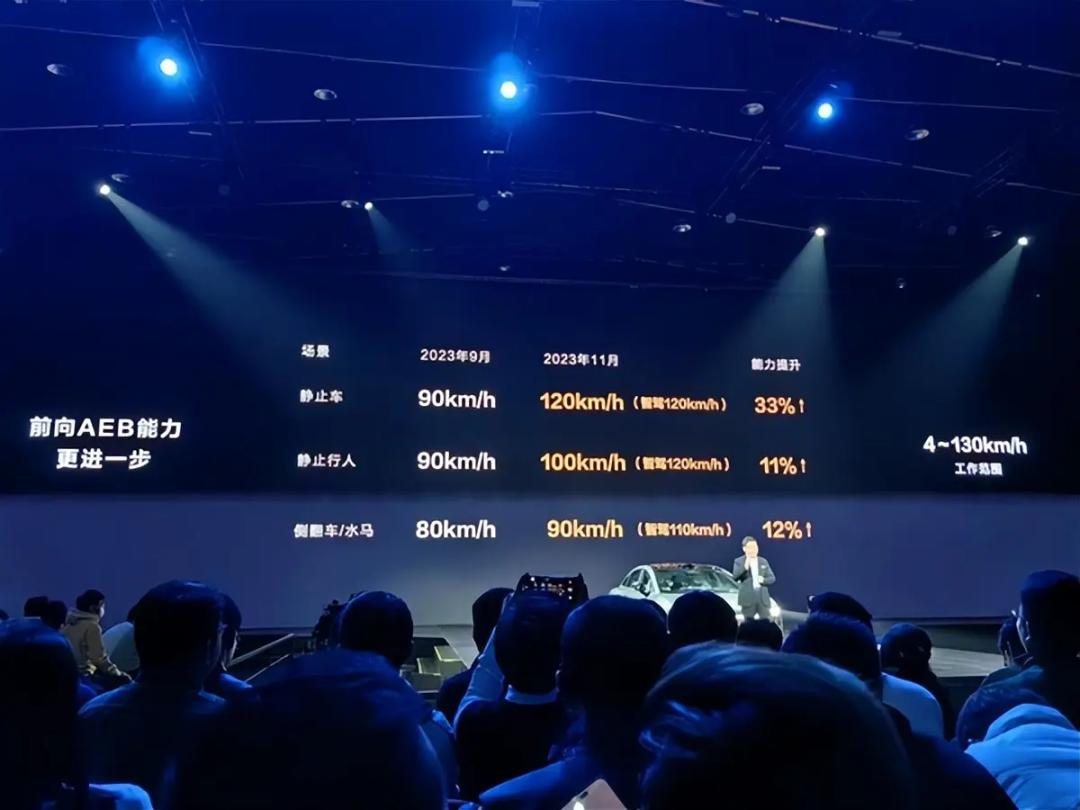 该申明一方面说明了问界低配版使用的博世方案,自动刹停工作范围有限,不如高配版华为方案。2023年11月28日,余承东在智界S7发布会上表示华为AEB方案可以在4到130KM内实现自动刹停,“静止车场景,可以做到120km刹停。”