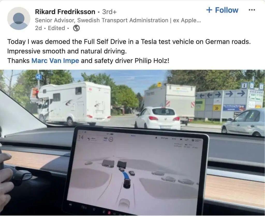 这次华为博世的公关乌龙,最受伤的可能是特斯拉。4月28日上午,马斯克抵达北京,商讨特斯拉自动驾驶FSD入华事宜。同日中国汽车工业协会发布了《关于汽车数据处理4项安全要求检测情况的通报(第一批)》,特斯拉在列,为FSD入华扫清了障碍。此前一位德国官员体验了特斯拉完全自动驾驶,表示赞叹。