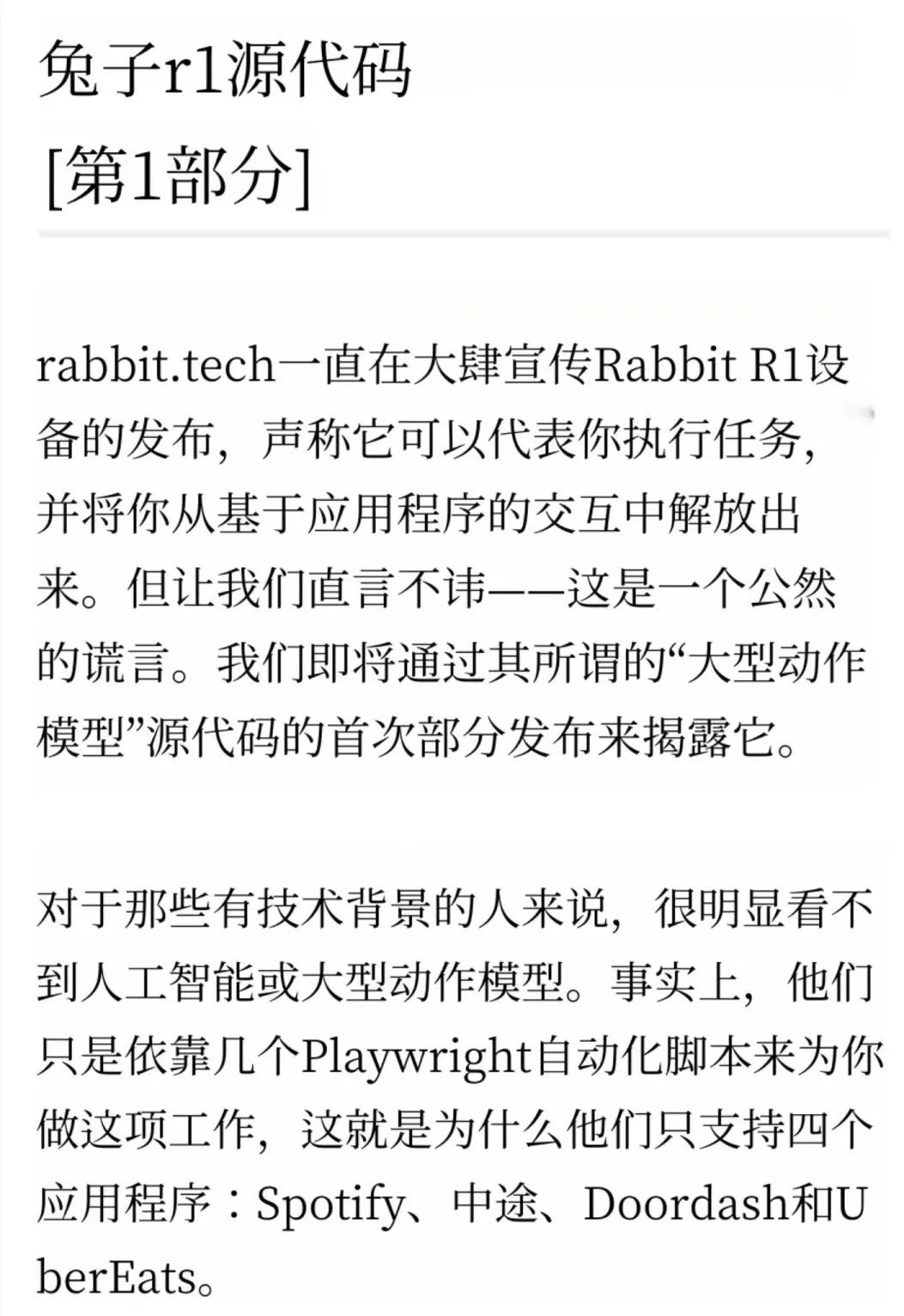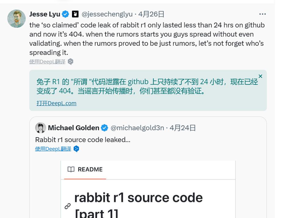 目前rabbit r1创始人吕骋发帖进行回应,表示这只是谣言,也有人认为泄露的代码不完整,不能说明什么问题。