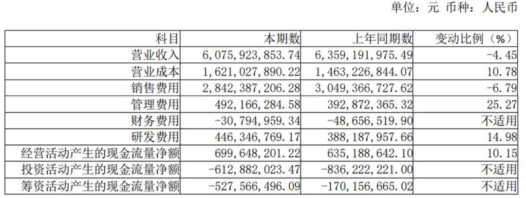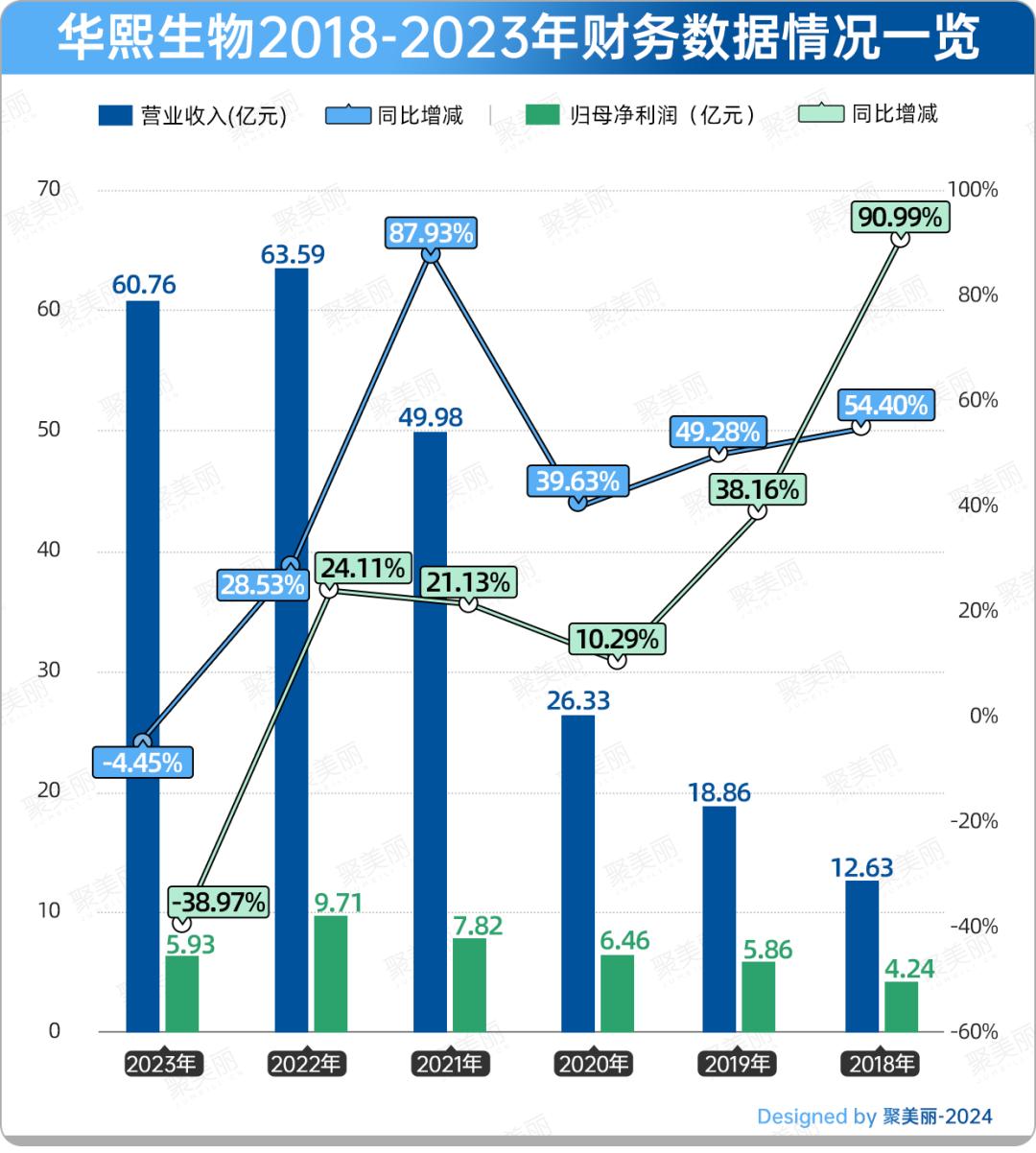财报显示,华熙生物2023年实现营业总收入60.76亿元,同比下降4.45%;归母净利润5.93亿元,同比下降38.97%。这是华熙生物自2019年上市以来首次出现营收、归母净利润双降。