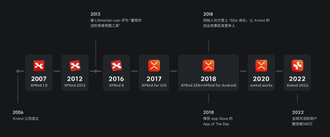 自2006年创业,Xmind即将进入18岁,其用户群体遍布全球不同国家和地区,全球月活用户数突破500万,其中中国用户占比过半。