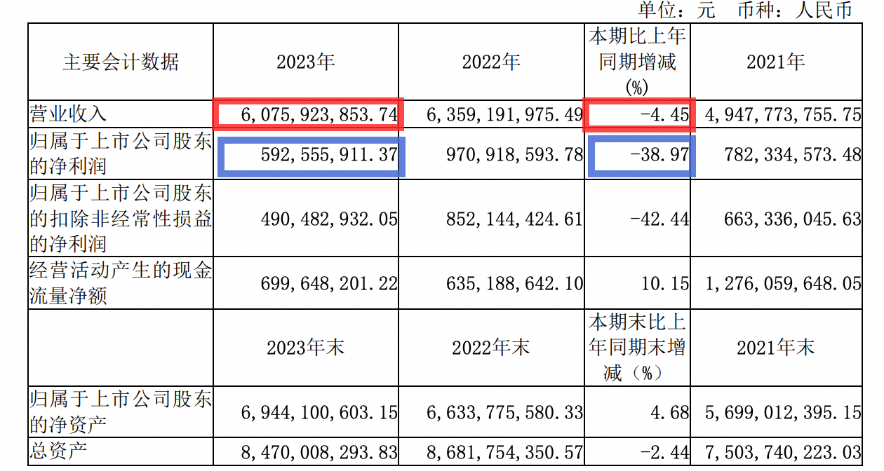 4月30日,华熙生物发布了2023年全年财报及2024年一季度报。财报显示,华熙生物2023年营收60.76亿元,同比下降4.45%,归属于上市公司股东的净利润为5.93亿元,同比下降38.97%。另外,今年Q1营收为13.6亿元,同比增长4.24%;归属于上市公司股东的净利润为2.43亿元,同比增长21.39%。