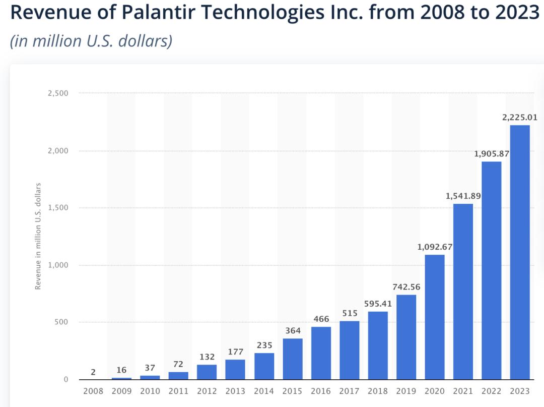 2005 年,美国中情局成为它的首个客户,Palantir 为其开发定制数据分析系统;