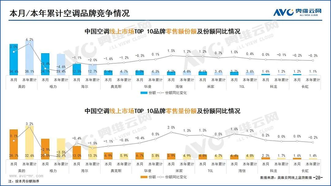 全员销售的作用呢?并非没有,但低于预期。结合奥维云网统计,格力电器2024年3月线上空调零售额份额为24.1%,同比下降3.4%;本年度累计23.4%,同比下降4.6%。数据说明,格力空调的线上盘基本饱和,很难再有增长空间。在这种情况下,全员销售就显得有些鸡肋了。