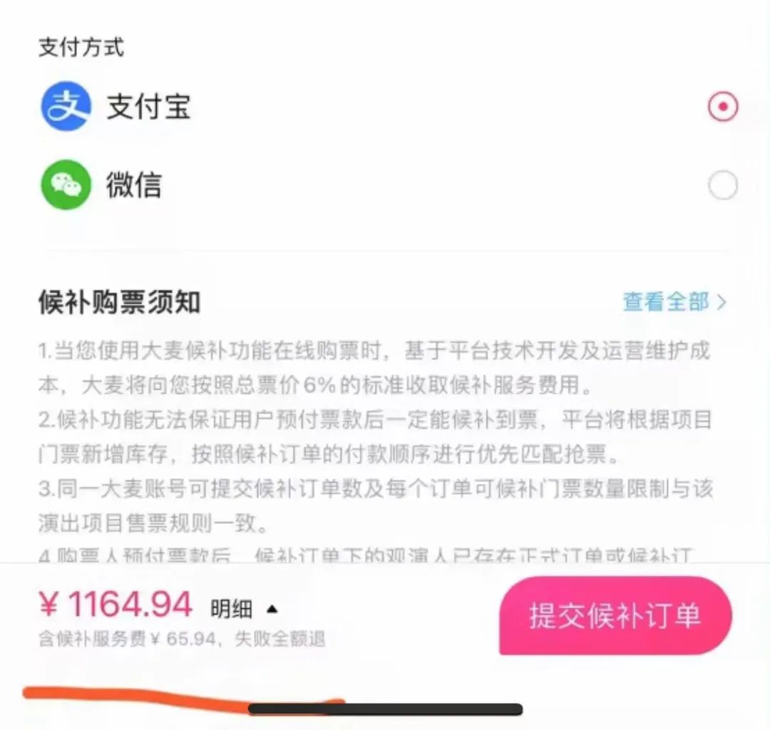 此外,大麦等平台还推出了“候补票机制”,允许用户预付款排队候补,虽然需要支付额外的6%手续费,但候补失败或者用户中途想取消候补,预付票款及服务费都会全额退回给用户,相比黄牛票的高额加价和跑路风险,可以说为消费者成功购票提供了一线希望。