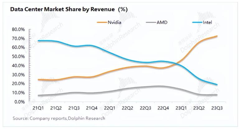 其实,一直以来,无论是PC市场还是数据中心市场,英特尔的优势均集中在CPU(中央处理器)领域,但2021年以来,人工智能技术快速发展,且由于Al服务器通常搭载以GPU(图形处理器)为主的加速芯片,GPU开始成为全球数据中心增量市场的主角。