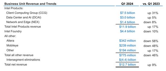财报显示,2024年第一季度,英特尔营收保持增长,但利润却无较大起色。