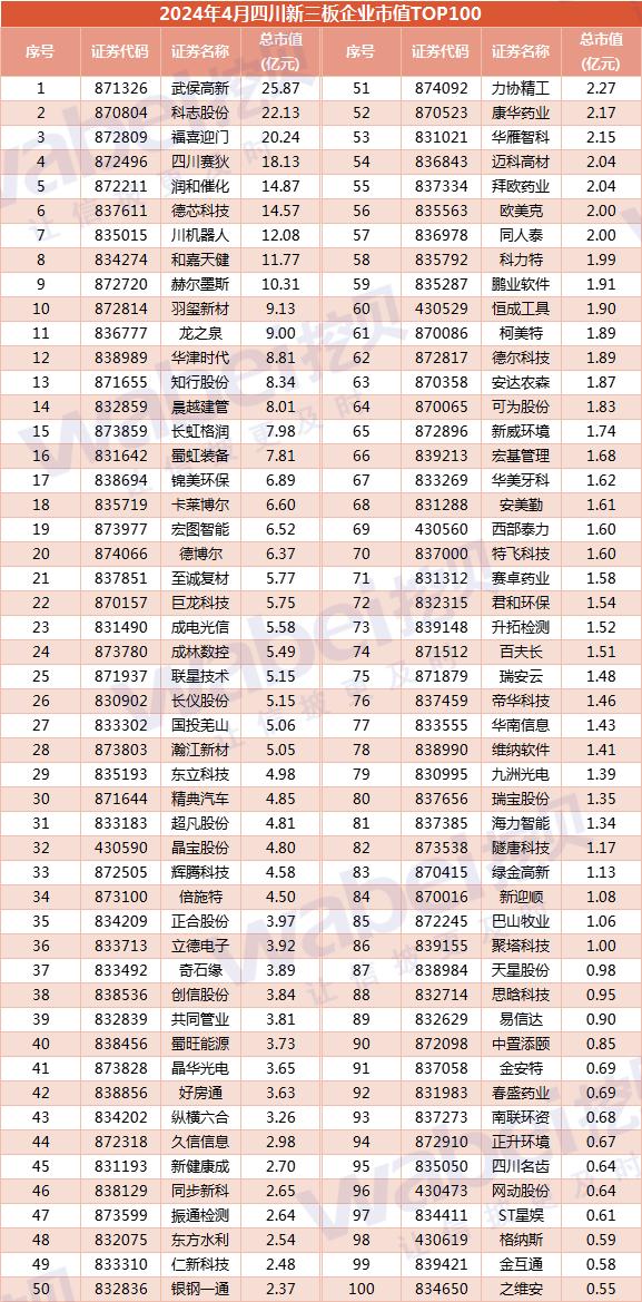 附-2024年4月四川新三板企业市值TOP100