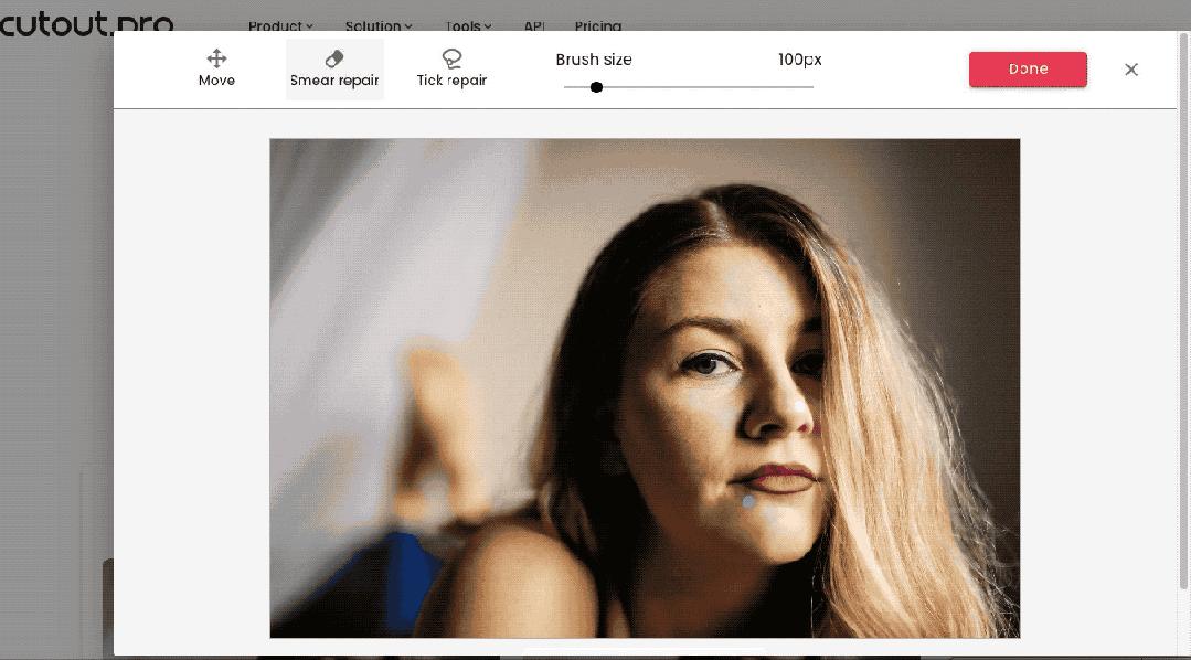 别急,将照片上传到cutout.pro(https://www.cutout.pro/),利用“物体擦除”功能,调整“橡皮擦”大小,尽量紧贴图像外围,抹掉不想要的部分。