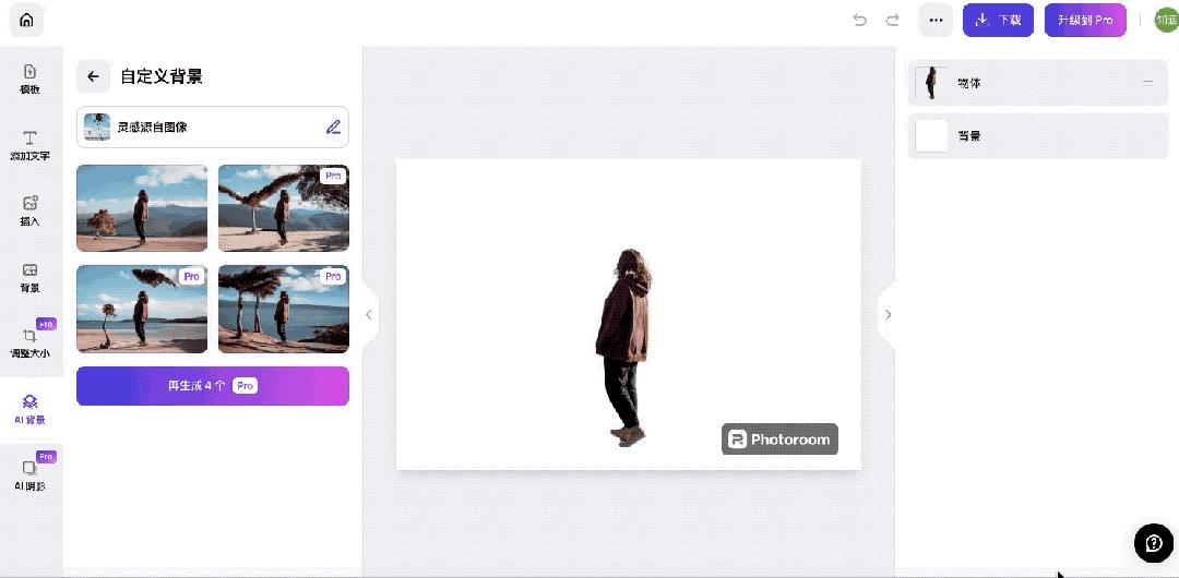 我尝试利用 Photoroom(https://www.photoroom.com/) 的“AI 背景“功能,上传原始图像;