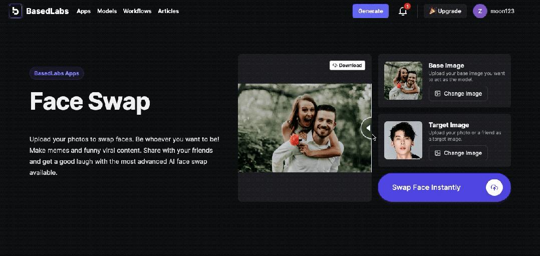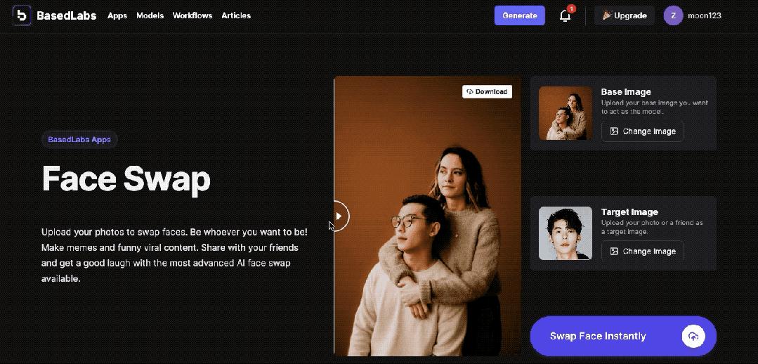 包括 BasedLabs 在内,如今的很多工具只需要用户分别上传一张原始图像和替换图像,不需要额外调试步骤,就能换脸成功。所以生成结果,十分考验两张图片的“契合程度”。