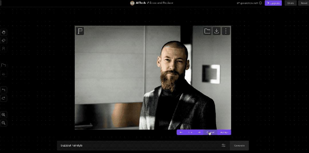 对于一个着急把照片发给相亲对象的男生来说,用 AI 生成一张近似金城武的俊美脸庞就不太合适,当务之急是先给他光秃秃的额头上P点儿头发。