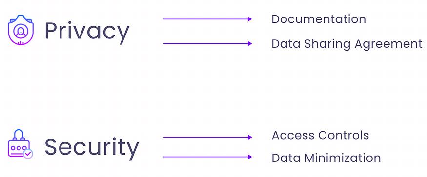 管理隐私和安全风险可以通过实施一些关键策略来实现。为了保护个人信息,投资适当的文档并建立明确的数据共享协议非常重要。此外,实施访问控制并遵守数据最小化实践有助于降低安全风险并确保敏感信息的安全。我们在下图中总结了这些信息。