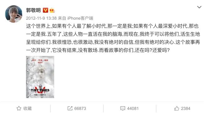 更重要的是,时代变了,人们发现《小时代》似乎也没那么差了。有人开始逐渐怀念郭敬明,就像郭敬明曾说的“没有人永远需要郭敬明,但永远有人正需要着郭敬明”。