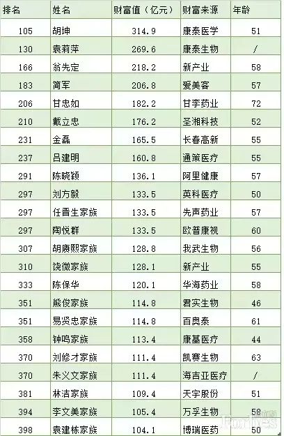注:2020年新晋医疗健康富豪,数据源自2020年福布斯中国