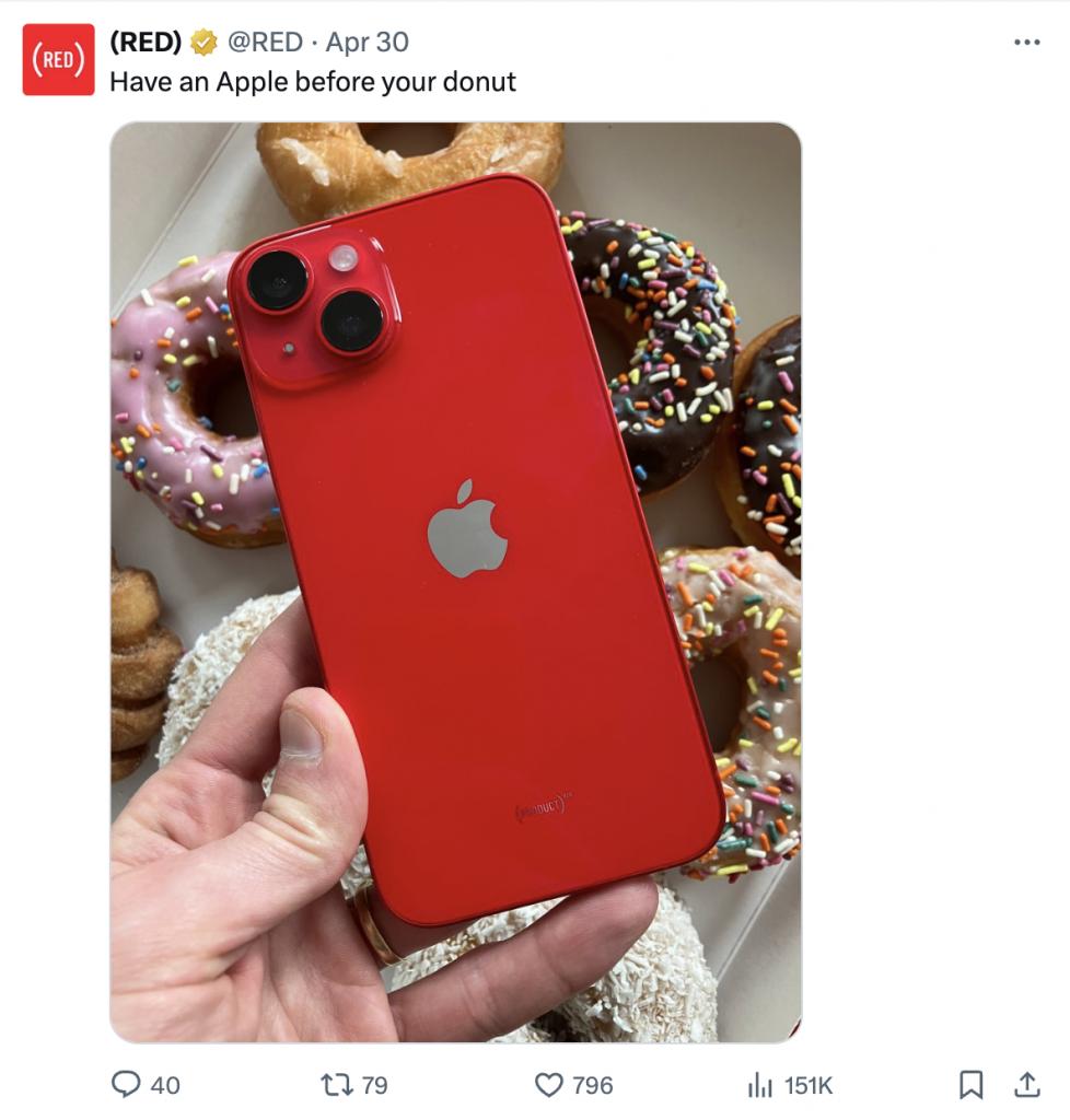 PRODUCT(RED) 在 X 上发布了一条推文,媒体解读有可能是 iPhone 15 即将推出红色版本的预告。