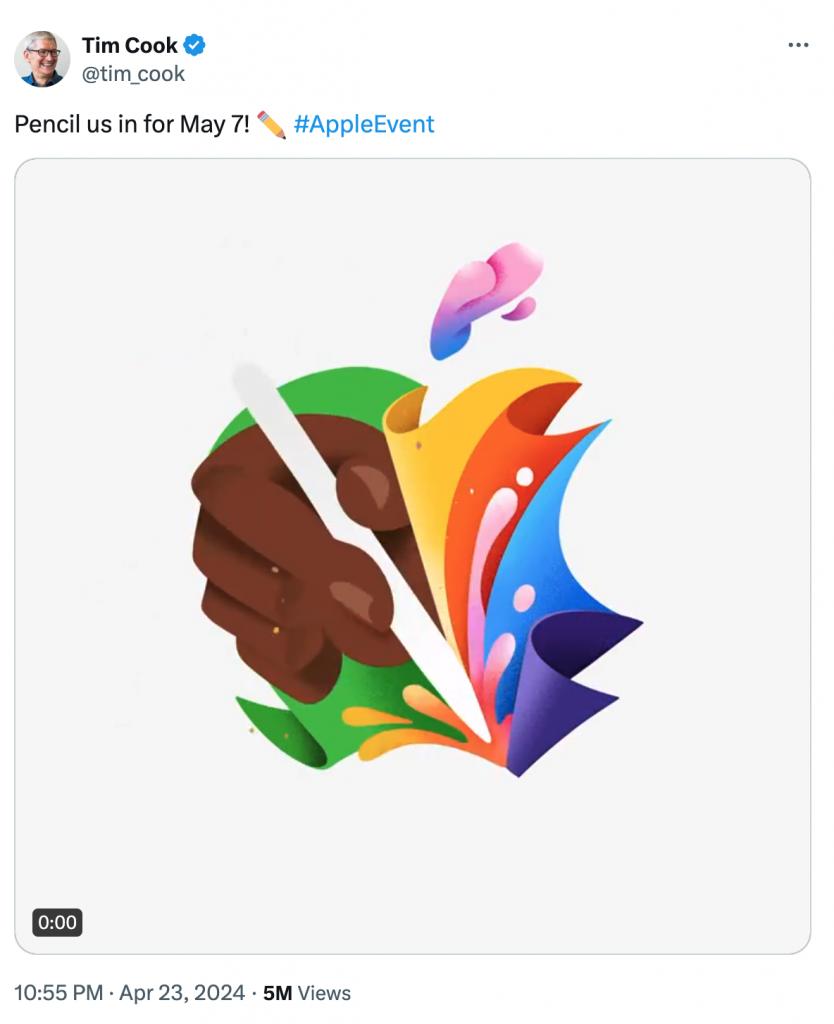 苹果 CEO 蒂姆·库克:「请在 5 月 7 日用『笔』给我们留言✏️」
