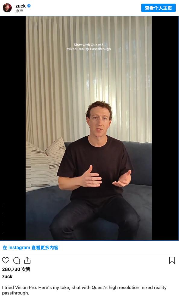 小扎自己也不得不承认 Vision Pro 的画面显示好、有些场景下眼动追踪很酷、是更好的娱乐设备;