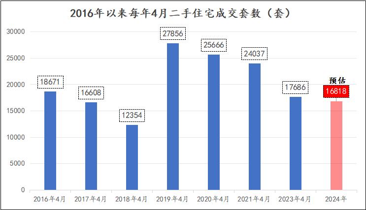 首先过往年份里这个4月的二手成交套数大概什么份量。