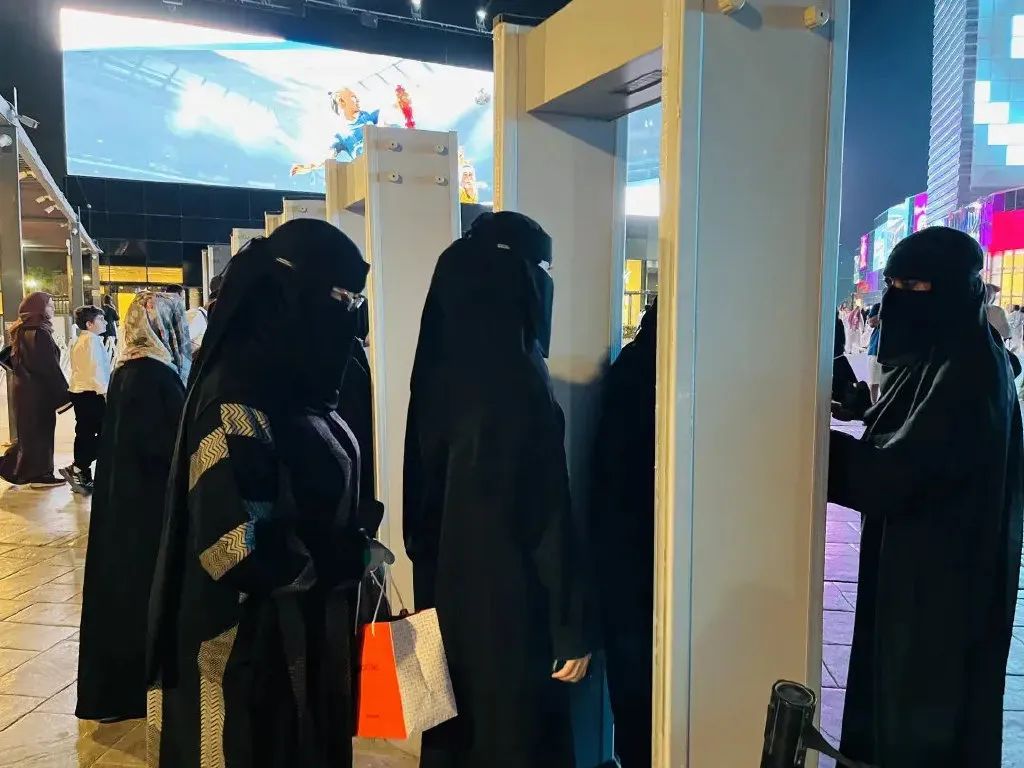 进入利雅得时代广场前的女性安检通道, 男女需要分开安检