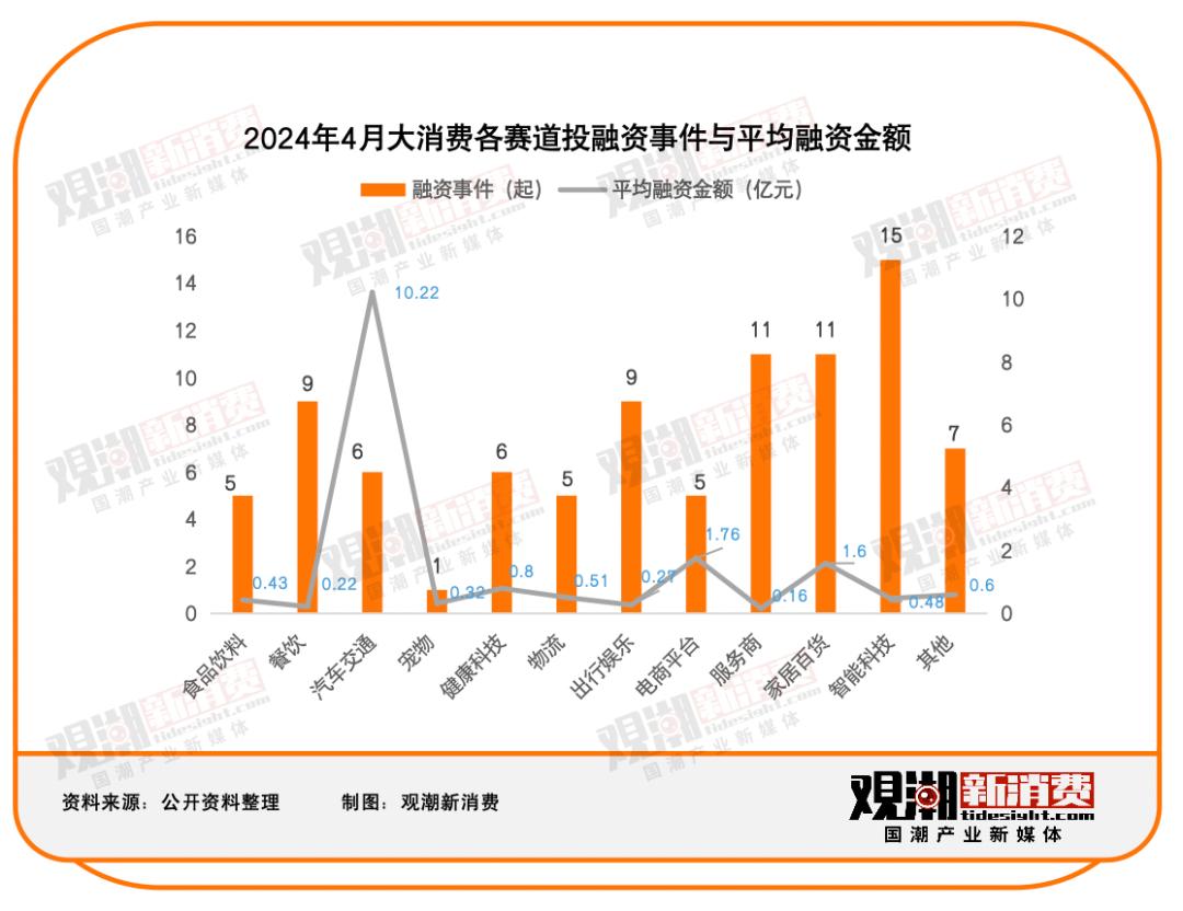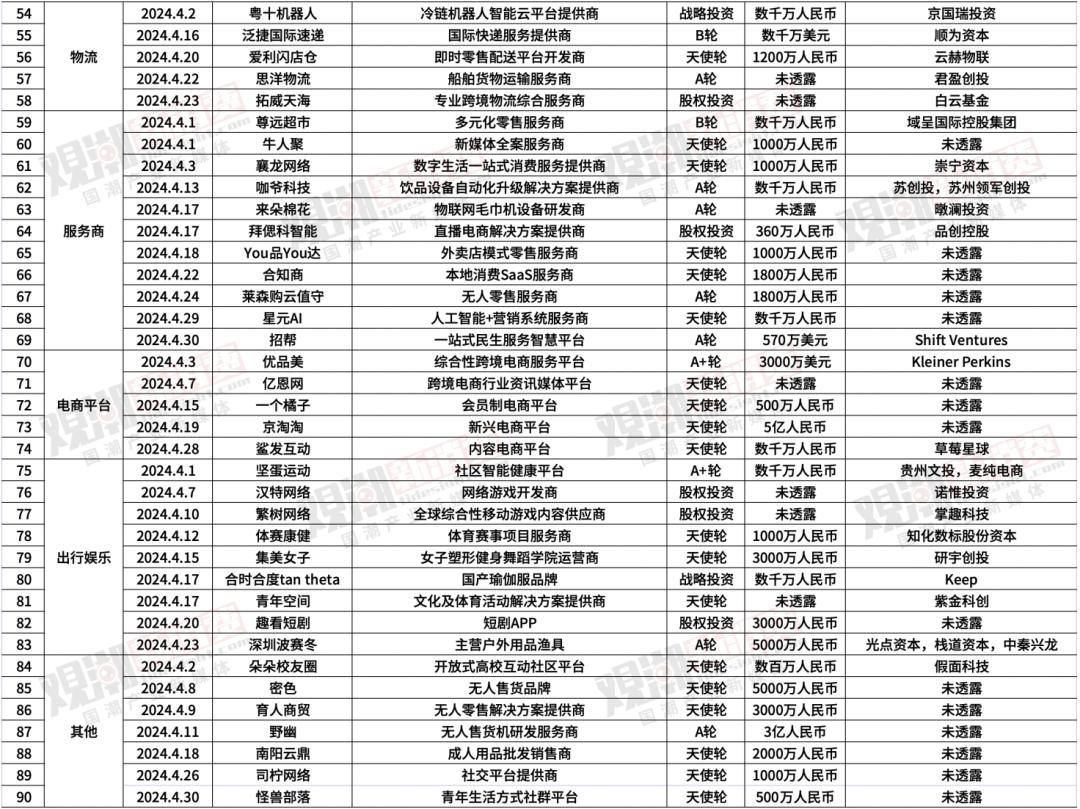四月消费投融资事件共90起,披露融资金额约105亿元