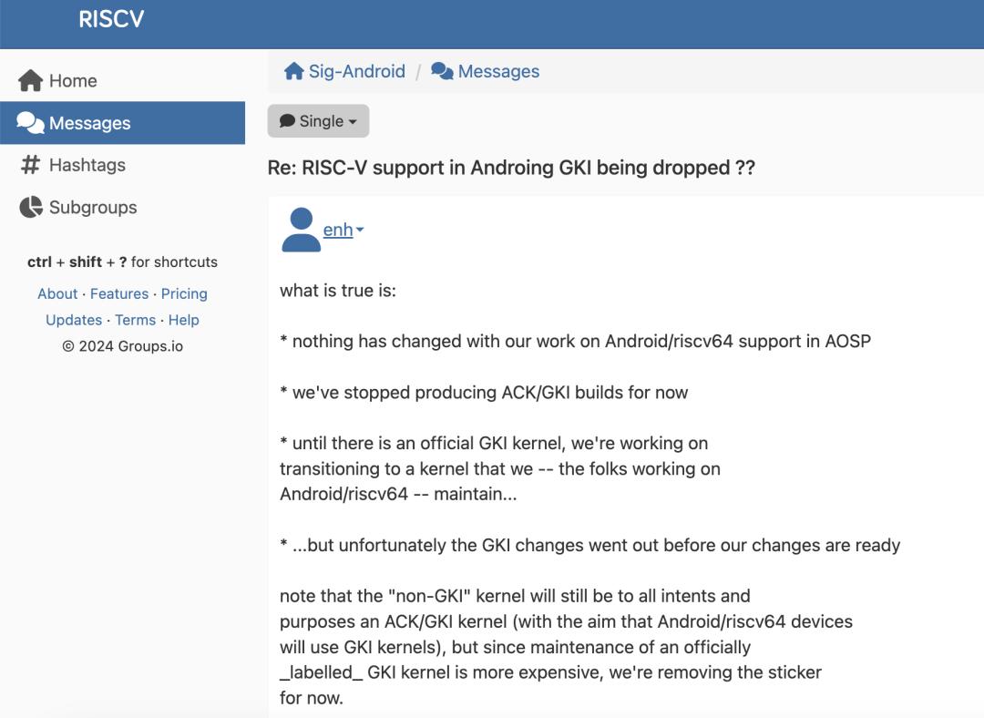就在众人猜测之际,在 RISC-V 邮件列表中,一位名为 enh 的 Google 工程师也分享了一则内部消息,其表示: