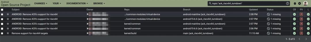 我们已经从 Android Generic Kernel Image(GKI)中移除了支持 RISC-V 的相关补丁。