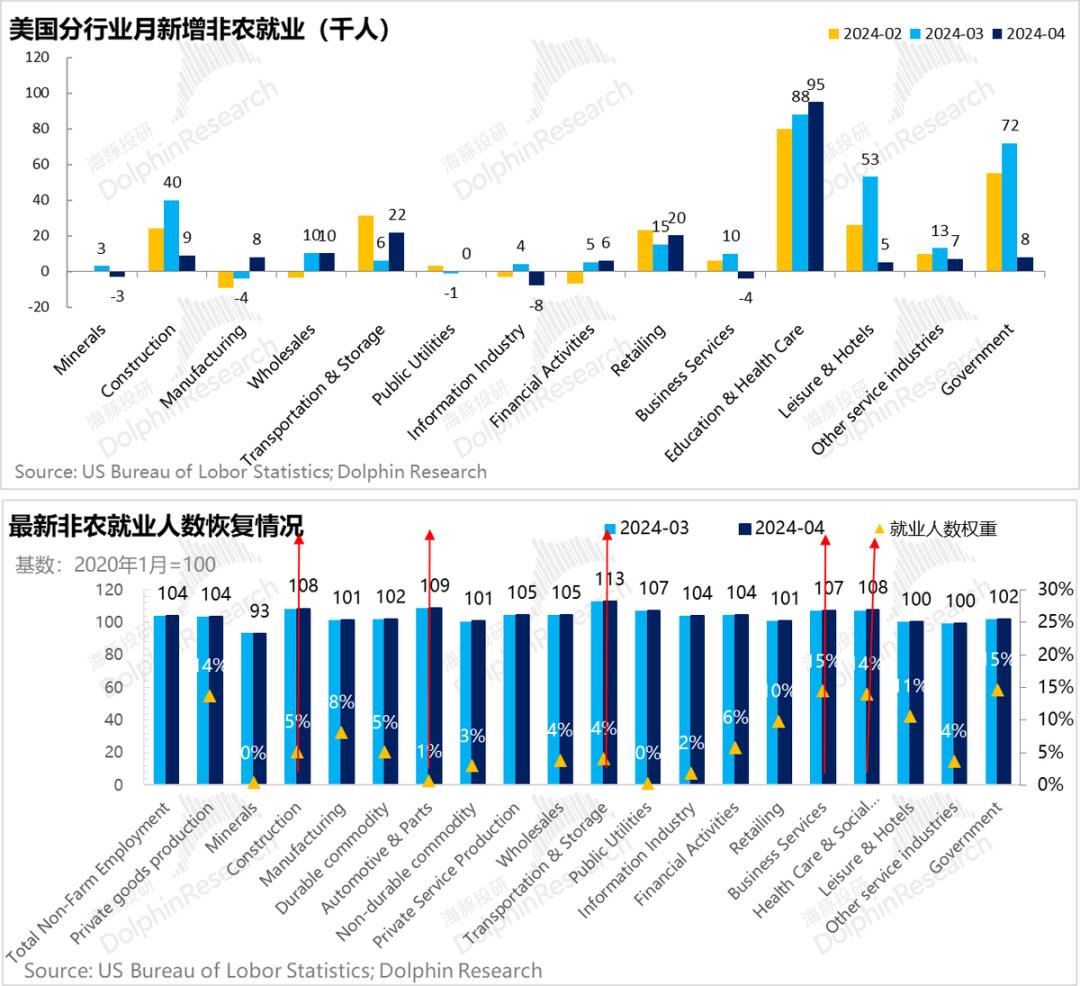 这个从新增就业的分布,以及相比2019年的就业多增的行业也能看出来:
