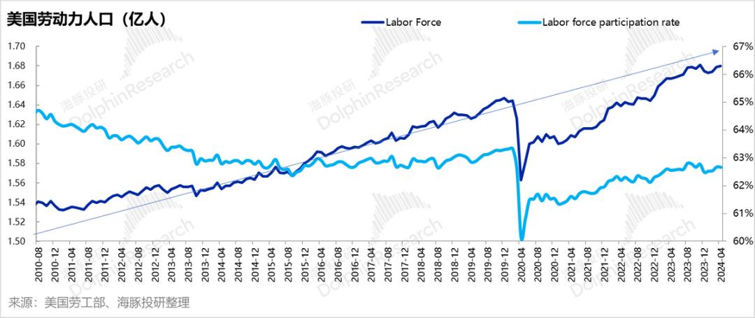 而美国新增可劳动的人口,基本与N年前的人口出生率无关,而是一个移民来完成的事情,而且移民人口通常年盛力壮、移来即用,没有从出生开始的“养成系”过程。