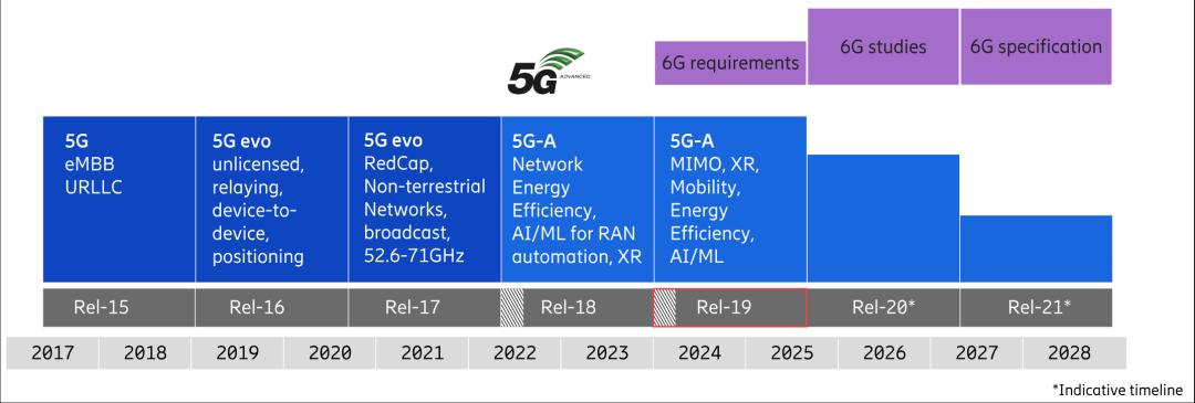 2017 年, 3GPP 就定义了 5G 发展的几个阶段,到今年刚好是 5G 到 6G 发展的中点,自然就叫 5.5G 了。