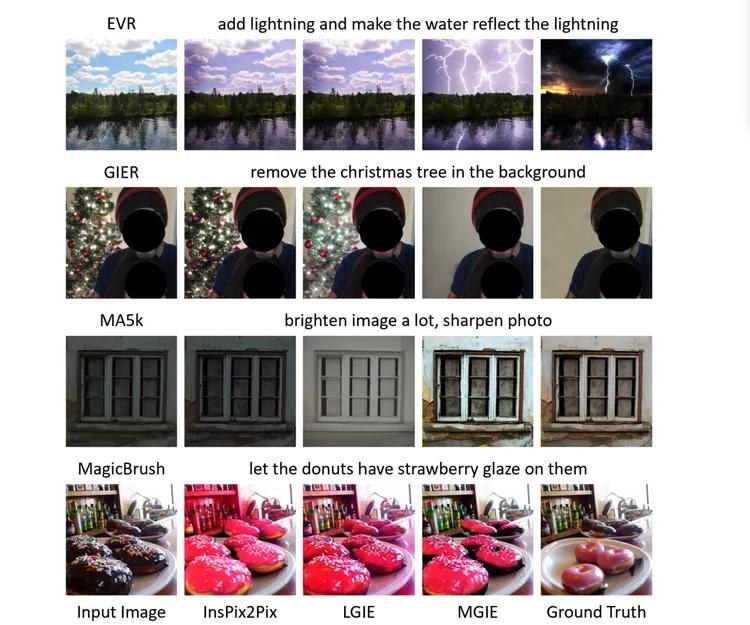 在另一项研究中,苹果描述了一个名为MGIE的图像编辑工具。通过简单描述你希望进行的编辑操作,如“让天空更蓝”、“让我的脸看起来更自然”、“添加一些石头”等,MGIE能够自动实现这些效果。研究人员表示:“MGIE不仅仅是提供模糊的指导,而是能够准确捕捉用户的视觉感知意图,并生成合理的图像编辑效果。”虽然初期的实验结果尚存瑕疵,但其潜力已足够令人瞩目。