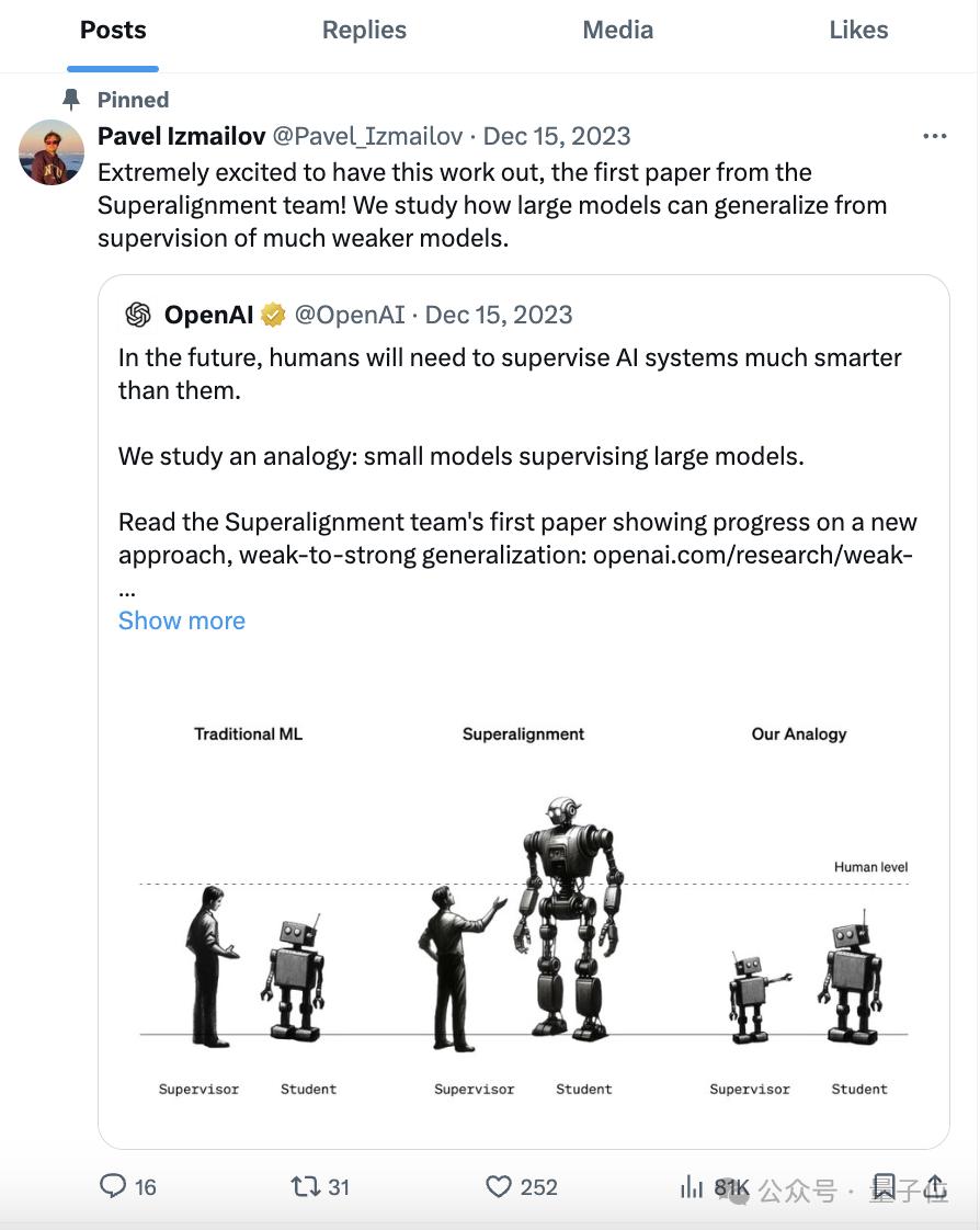 当事人Pavel Izmailov(以下简称小P),正是Ilya盟友之一,在Ilya领导的超级对齐团队干过。