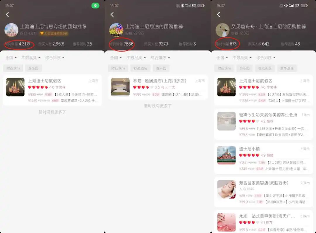 以上述榜单中的 @上海迪士尼特惠专场 举例。名称看起来像是迪士尼官方账号,但其实属于达人账号,主播是有过 7 年从业经验的导游。