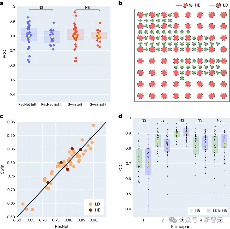 在研究中收集的48位受试者中,16位的ECoG信号来自右脑。研究者通过比较使用ResNet和Swin解码器的性能,发现右脑半球同样能够有效地进行语音解码,其效果与左脑半球相近。这一发现为那些左脑受损且失去语言功能的患者提供了一种可能的语言恢复方案。