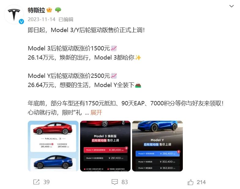 ▲4月21日特斯拉全系降价1.4万元