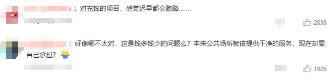 有的担心这种模式跟市场上一些健身房一样,充钱还没用完就跑路了;有的觉得这种 13.8 万次 / 1000 元的定价策略不合理;甚至还有部分网友认为这本应是公共场所的免费服务...