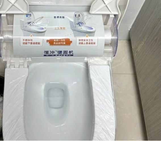 花 9 毛钱这个 “ 便圈机 ” 就会自动给马桶套上一层塑料膜马桶圈,供消费者一次性使用。