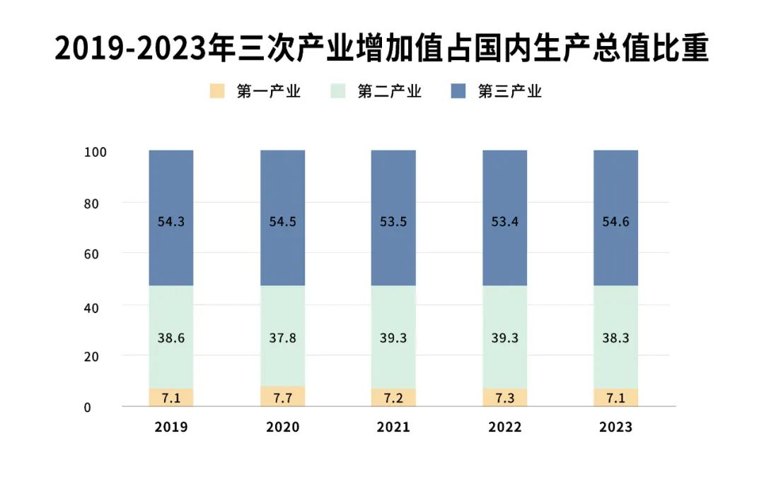 2023年,中国GDP中第三产业(含虚拟经济)占比约54.6%,在吴军看来还有很大的发展空间