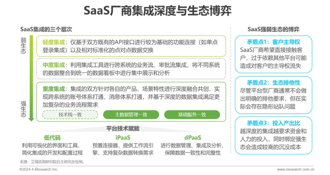 SaaS集成由浅入深,平台技术赋能逐步完善,但仍存在利益博弈