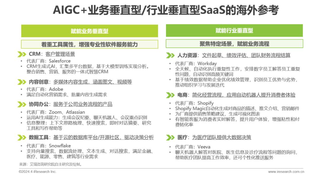 AIGC的应用范式是以智能生成技术辅助标准化SaaS更高效地解决特定问题,从而实现:(1)实时处理大量数据并提供反馈;(2)实现团队协作的效率提升,解放劳动力;(3)帮助挖掘企业数据资产。