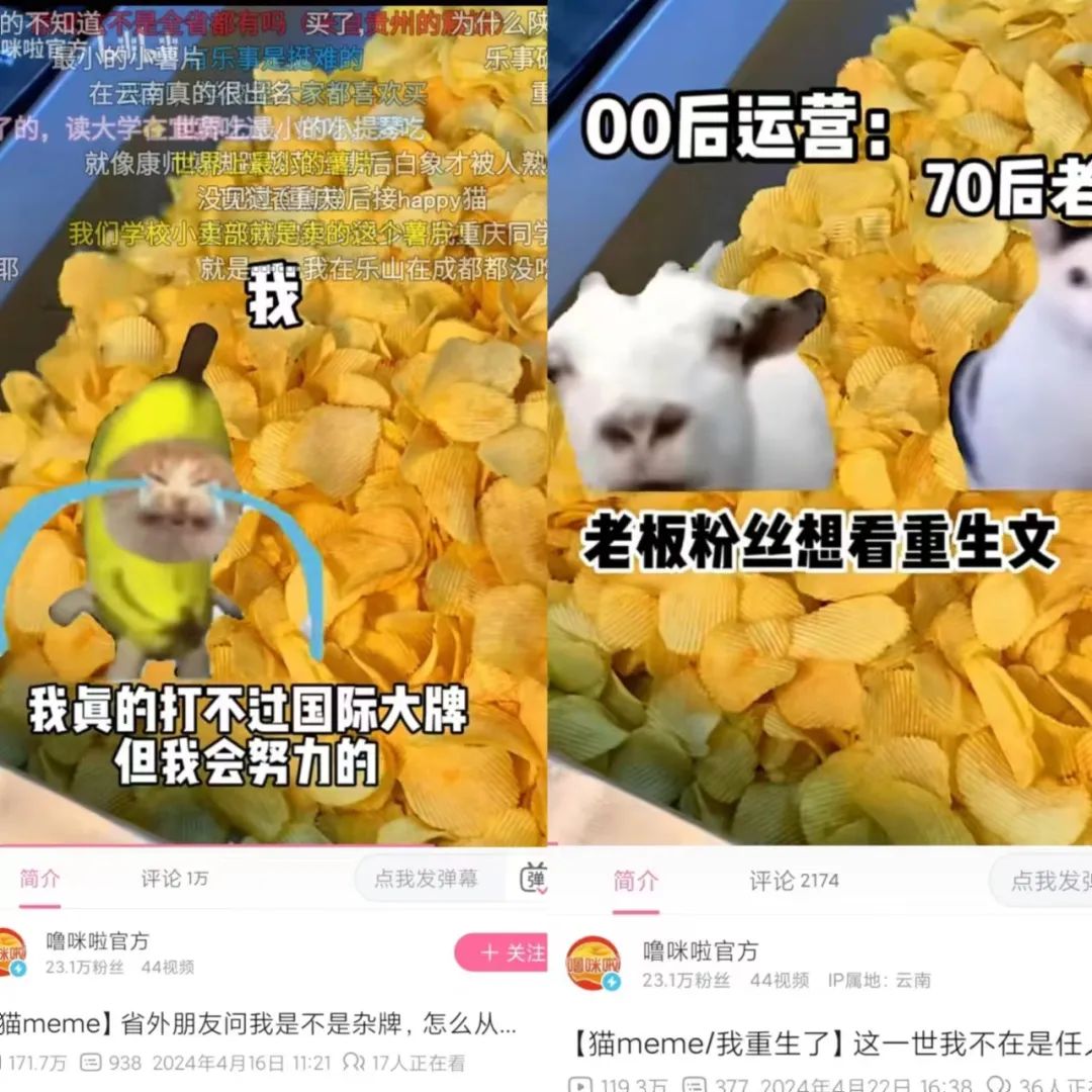 此外,对于to c消费品牌,品牌官号年轻化运营也是一条可走之路。@噜咪啦官方 是B站上云贵薯片的一个品牌,凭借着00后运营猫meme视频,该账号从2024年1月发布第一个B站视频起,目前粉丝量已达到23万,属于官方账号涨粉较快的案例。