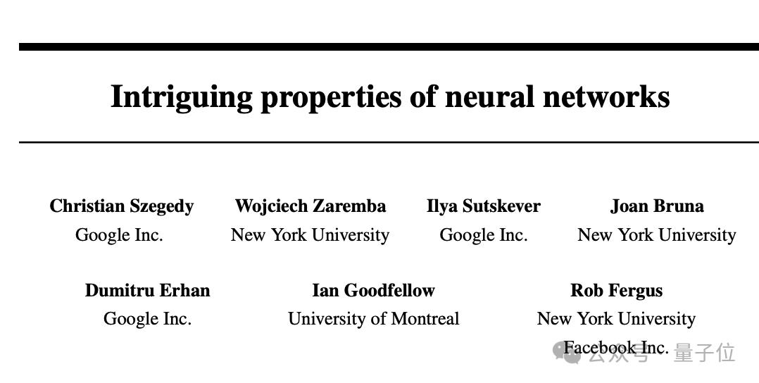 另外,同样来自2013年的研究,来自谷歌、纽约大学、蒙特利尔大学的论文Intriguing properties of neural networks获得了亚军。