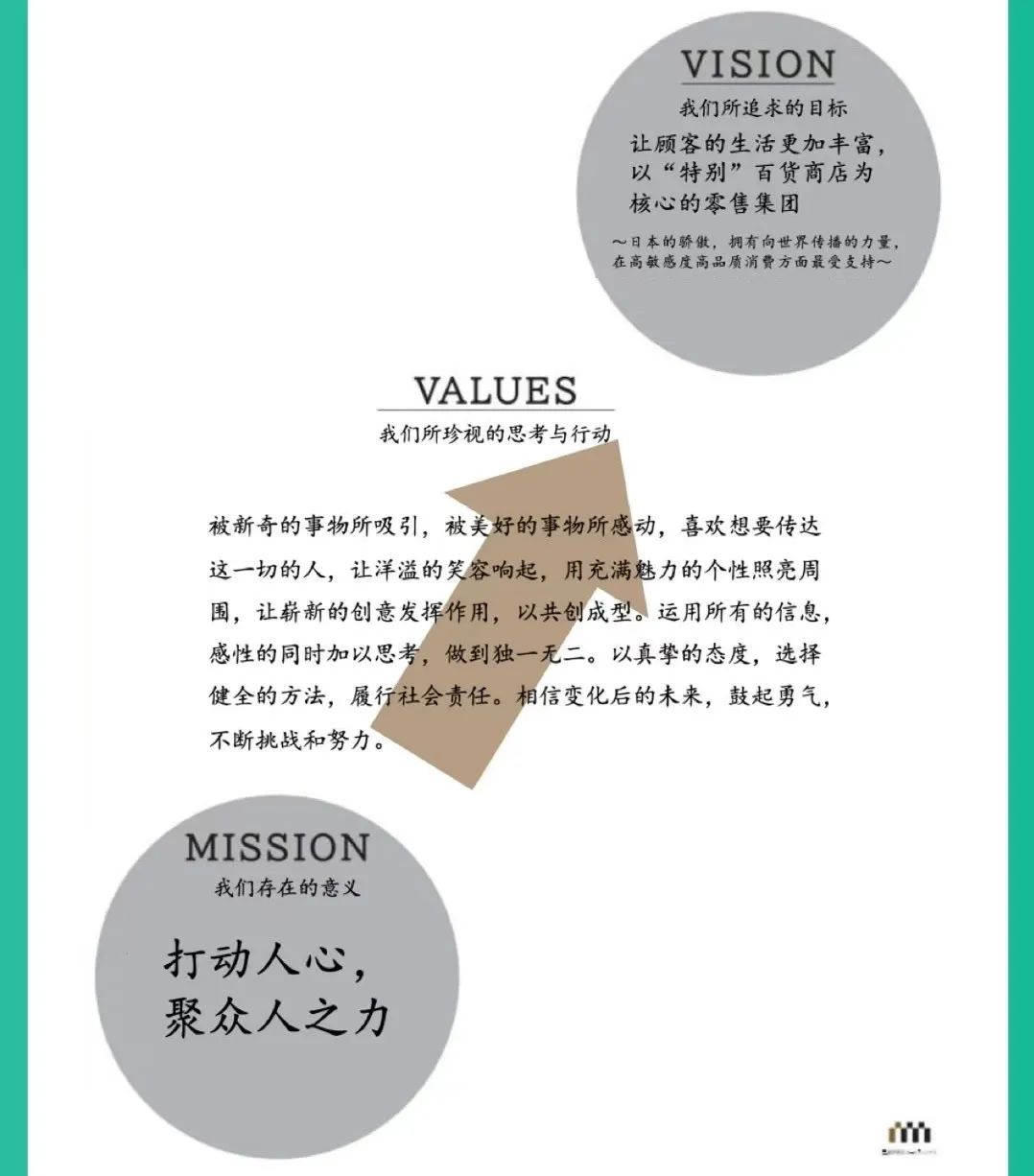2021年,在公司工作34年的细谷敏幸接任社长职务,他面对的除了日本百货业大衰退,还有棘手的疫情影响问题。他并没有立刻着手组织和业务变革,而是发动公司全员,重新讨论公司的使命、愿景和价值观。 通过对14000位员工(包括离职员工)的调查、1600小时的员工对话,倾听员工的声音,找到员工的个人使命、价值观与集团使命、价值观的交集,并重新定义了三越伊势丹的企业理念。