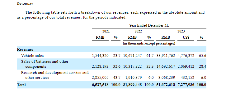 当然,在汽车销售出现明显增长后,汽车业务终于成为了极氪的主要收入来源,2023年极氪卖出了11.87万辆车,汽车销售部分的毛利也达到了57.92亿元。