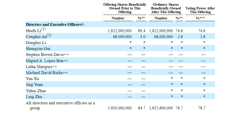 据招股书显示,IPO发行前,李书福在极氪汽车的实际持股比例为80.4%,CEO安聪慧持股比例为3%。发行后,二者会稀释到74.6%和2.8%。