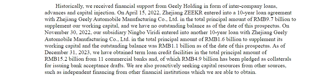 此外,招股书介绍,2022年4月15日极氪与吉利汽车签订了一笔10年期贷款,总额为97亿元人民币。2022年11月30日,极氪子公司宁波威睿与吉利汽车签订了另一笔10年期贷款,总额为16亿元。这两笔贷款都用于补充流动资金。