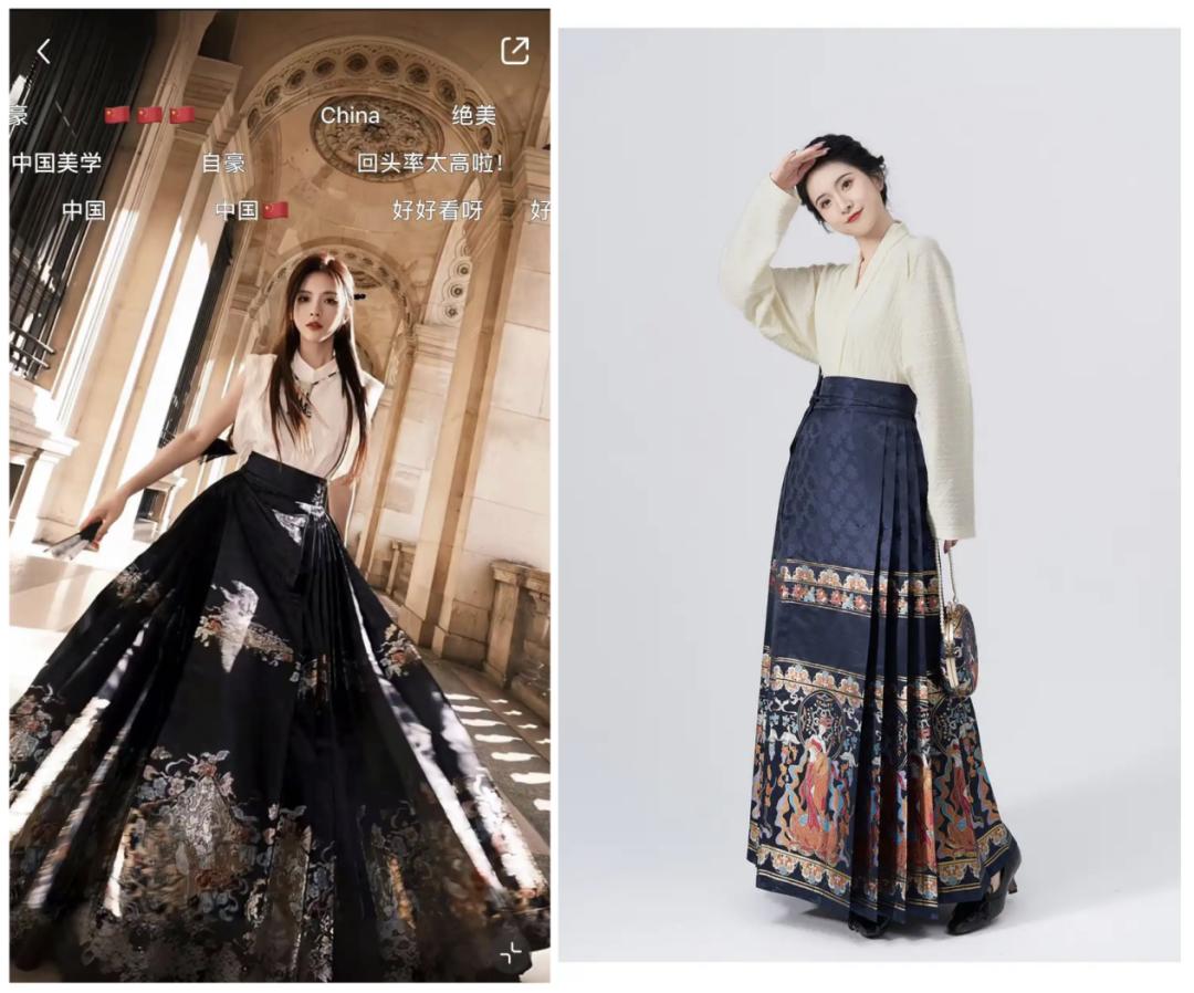 用它来描述中国过去几年汉服的复兴,尤其是最近一年马面裙的火爆,也是恰如其分的。一款服装单品的风行,是多种社会文化和商业工业元素的总和。